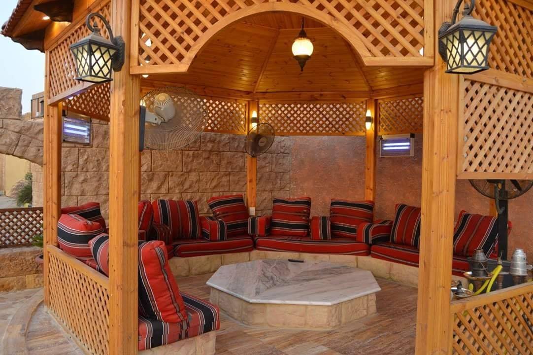 تقع في أعالي جبال البلقاء تتميز بديكوراتها ذات الطابع العربي والجلسات العربية الفريدة التي يحيطها جبال النخيل الشاهقة .. يرافق الجلسات الخارجية مكان للشواء يرافقه مطبخ خارجي بجانب المسبح.. يوجد بداخل المسبح على يمينه جلسة مريحة مما يمنح المسبح مزايا فريدة أهمها الإسترخاء بجانب المسبح والإستمتاع بمنظر المياه.يحيط المسبح أضواء داخلية من جميع الجوانب لسباحة ليلية آمنة ومميزة. يرافق المزرعة منطقة مغلقة آمنة تحتوي ألعاب للأطفال وترامبولين مغطية بالكامل.تتسع الجلسات الخارجية لأكثر من 20 شخص ممتدة على جميع أنحاء المزرعة .
